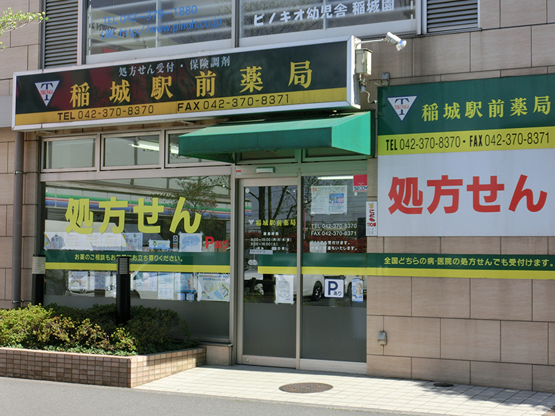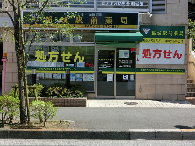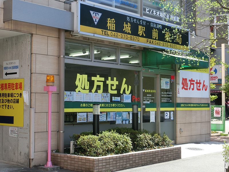 京王線稲城駅すぐそば、エスカレーター降りて右手にあり、その名も『稲城駅前薬局』です。